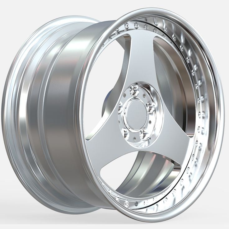 2 pieces wheel Totally Forged. Custom set up Silver Flat face/ 3 Spoke in 2.5” polish lip Hardware